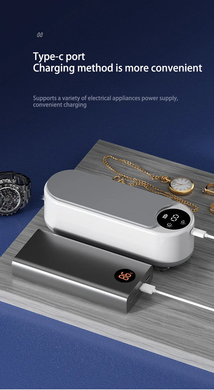 ● Portable ultrasonic jewelry cleaning machine cleaning more comprehensive. The cleaning machine uses ultrasonic principle to fit and clean every angle of your items deeply.